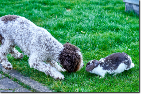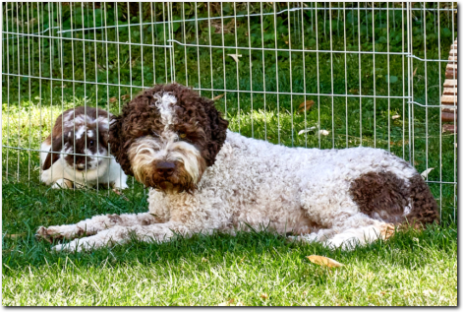 Finnegan ist ein ausgesprochen schöner und sympathischer Rüde, der uns sehr viel Freude macht. Er ist sehr menschenfreudlich und zeigt sich sehr gut auf Ausstellungen, wo er auch erfolgreich gestartet ist. So etwas wie Jagdtrieb kennt er nicht, und mit unseren Kaninchen spielt er lieber.