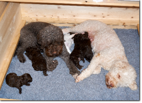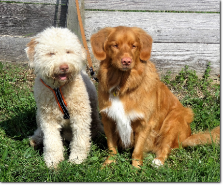Und aus unserem ersten Wurf haben wir dann die Amira behalten, die auf jeden Fall farblich die perfekte Ergänzung ist. Zumindest werden wir immer wieder auf die Farbkombination unserer drei Hunde angesprochen. Außerdem schien Momo geradezu auf einen weiteren Lagotto gewartet zu haben, die beiden verstehen sich wirklich klasse. Das geht so weit, dass sie sogar Momos Welpen gemeinsam aufziehen. Mal schauen, wie das wird, wenn Amira dann mal eigene Welpen hat.